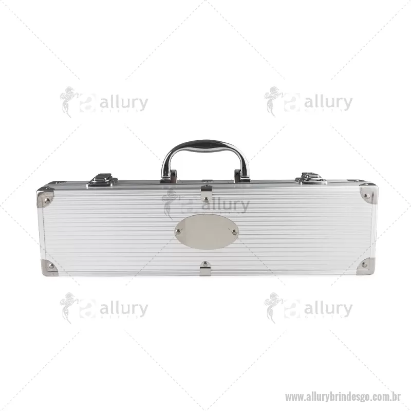 Kit Churrasco 3 Peças Prepare churrascos deliciosos com nosso kit de três peças, ideal para quem busca qualidade e precisão no preparo de carnes e outros alimentos. O conjunto inclui uma pinça, um garfo e uma faca de sete polegadas, acompanhados de uma elegante maleta de alumínio com plaquinha para personalização, garantindo mais exclusividade e organização. Altura : 11,4 cm x Profundidade : 7,9 cm Comprimento : 36,8 cm Peso aproximado (g): 676 - - ALLGOKCH090