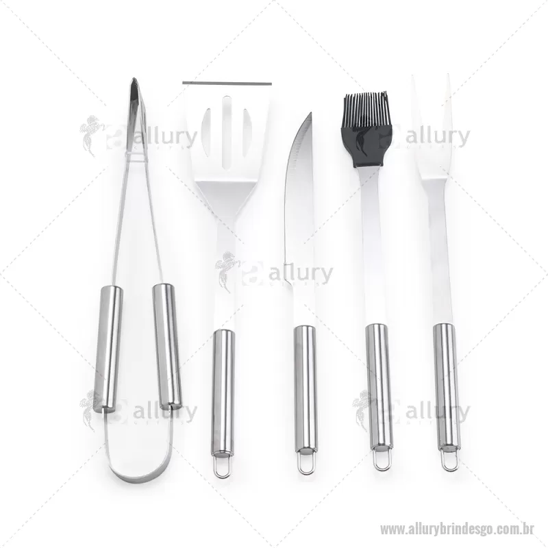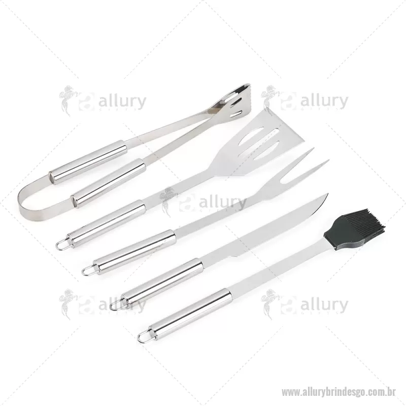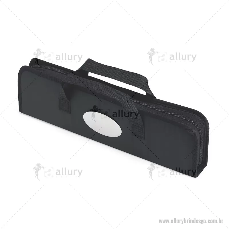 Kit Churrasco 5 Peças Descrição: Kit churrasco com cinco peças em inox. O conjunto inclui: uma faca de 6 polegadas, um garfo, uma espátula, um pincel com cerdas de silicone e um pegador. Acompanha estojo em nylon com um par de alças para transporte e placa metálica personalizável com verso autoadesivo para fixação. Altura : 4,5 cm x Largura : 11 cm x Comprimento : 38,5 cm Peso aproximado (g): 662 - - ALLGOKCH094