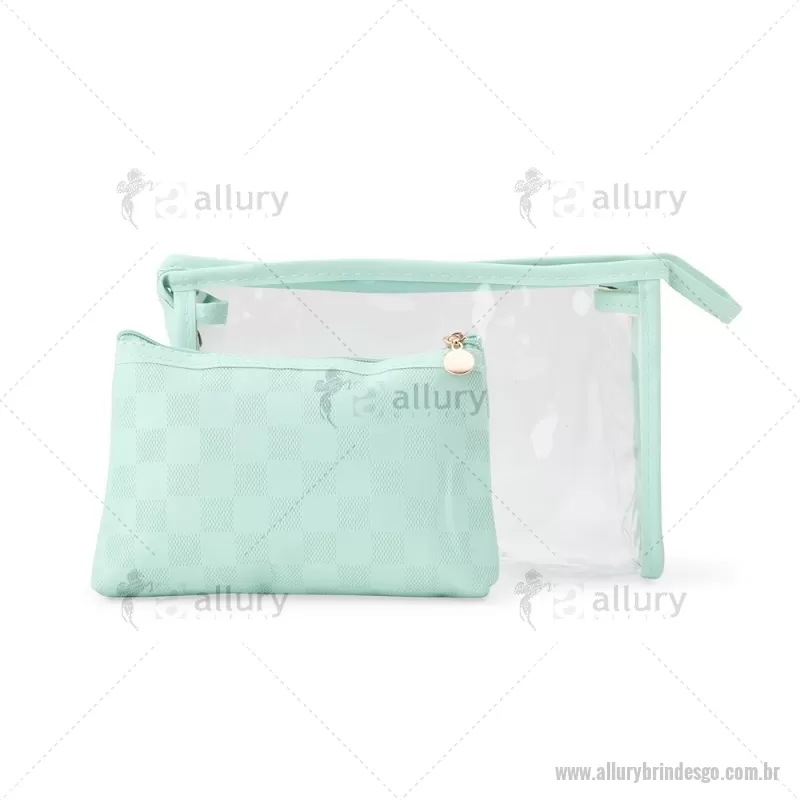 Kit nécessaire duas peças em PU e PVC. Tamanho total aproximado (CxL): Altura : N.1: 17 cm x Largura : N.1: 23 cm x Profundidade : N.1: 7 cm Altura : N.2: 13 cm x Largura : N.2: 19 cm x Profundidade : N.2: 5 cm Peso aproximado (g): 120 - - ALLGONC117