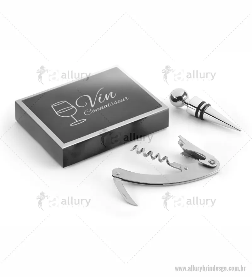 Conjunto para vinho. Zinco. Saca-rolhas com canivete de sommelier e rolha. Fornecido em caixa de oferta. 103 x 133 x 28 mm - - ALLGOKVI029