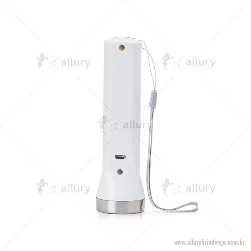 Lanterna plástica recarregável de um led com 3 estágios de iluminação e dois leds lateriais com função luminária. Possui cordão de nylon para transporte e acompanha cabo usb. Largura : 3,7 cm x Espessura : 2,6 cm x Comprimento : 13,1 cm Peso aproximado (g): 52 - - ALLGOLL024