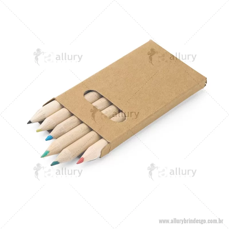 Caixa de papel cartão natural com 6 mini lápis de cor. Medidas do Produto: 4,5 x 9,0 x 0,9 cm. - - ALLGOKIDS017