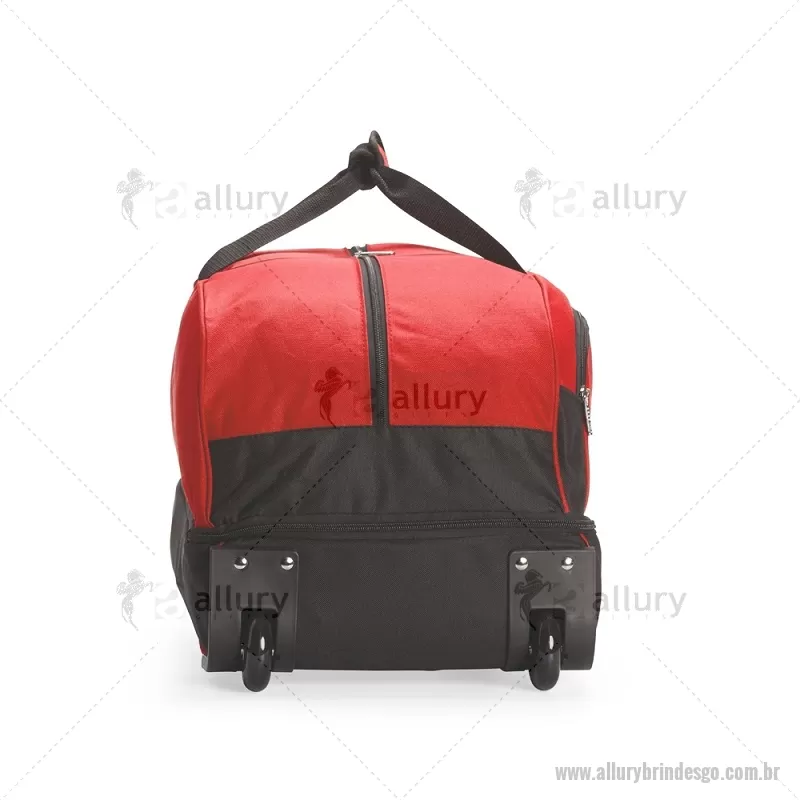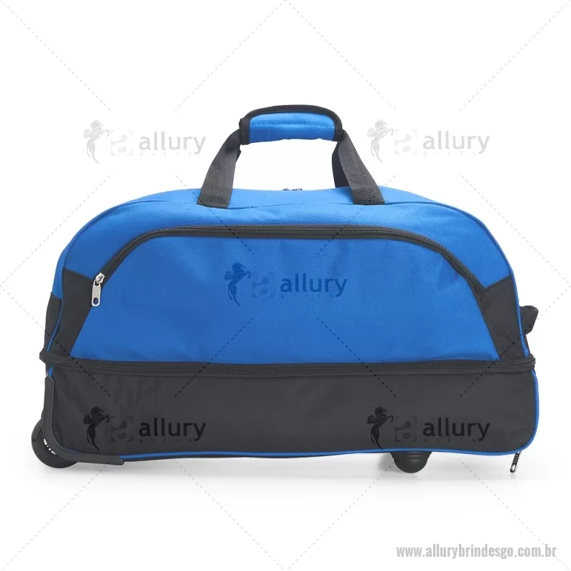 Mala versátil com capacidade de 51 litros, confeccionada em poliéster resistente à água. Possui quatro compartimentos funcionais, incluindo um espaço específico para armazenar o puxador. Oferece praticidade no transporte com alças de mão com fecho em velcro, puxador retrátil e duas rodinhas, além de contar com base reforçada e pés de apoio para maior estabilidade. Ideal para o dia a dia ou viagens curtas. - - ALLGOMC251
