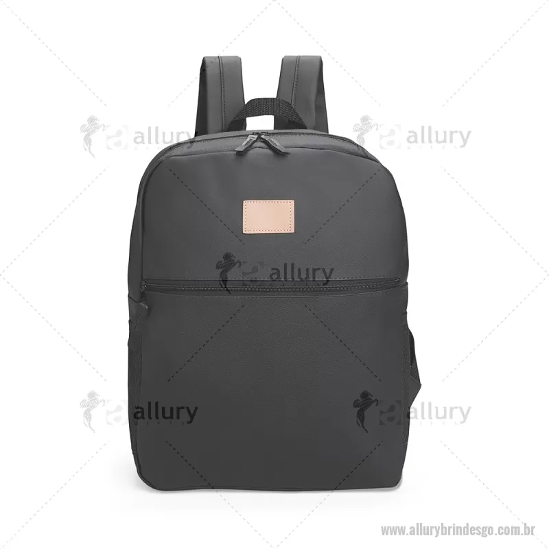 Mochila em couro sintético impermeável, com fechamento em zíper e capacidade de até 20 litros. Possui compartimento interno com divisória para notebook de até 14”, além de bolso frontal com plaquinha decorativa e dois bolsos laterais em tela de nylon. Prática e ideal para o uso diário. - - ALLGOMC249