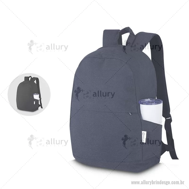 Mochila para notebook em algodão 340g/m² reciclado. Parte externa: Bolso frontal com zíper; Alça de mão e ombro; Engate para mala de viagem; Bolso lateral; Parte interna: Compartimento para Notebook, Tamanho total do Notebook - 15,6" Dimensão Produto: 46 x 30 x 15 cm Capacidade do Produto: Aproximadamente 20l Peso do Produto: 0,430kg - - ALLGOMC227