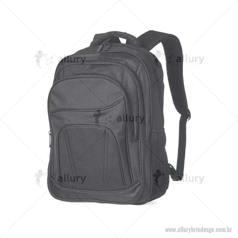 Mochila de nylon 30 litros com três compartimentos, sendo o principal com bolso para notebook 15,6.Com bolsos laterais telados, a mochila possui alça para encaixe em malas de viagem, duas alças de mãos e alças para as costas com revestimento espumado. Acompanha plaquinha metálica. Altura : 44 cm x Largura : 32 cm x Profundidade : 22 cm Peso aproximado (g): 617 - - ALLGOMC237