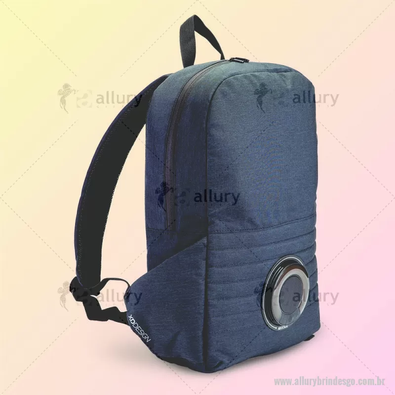 Mochila super moderna para notebook confeccionada em poliéster, possui alto-falante de 3W destacável com LED com Bateria recarregável. Funcionamento até 5 horas. Produto com muito espaço interno, tem Capacidade de 20 Litros. Ótima opção de brinde personalizado para eventos e ações promocionais. Brinde com utilidade e de qualidade, Satisfação de clientes e parceiros comerciais garantida, Colaboradores mais produtivos, Marketing indireto. - - ALLGOMC098