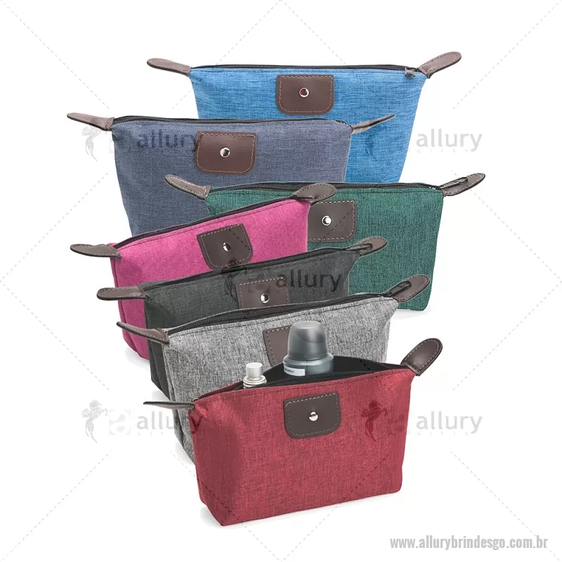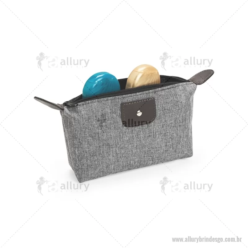 Nécessaire compacto em poliéster com mescla de PVC resistente à água. Possui fechamento em zíper e acabamento com detalhes em bidim e metal, oferecendo praticidade e um visual moderno para organizar pequenos itens do dia a dia. - - ALLGONC150