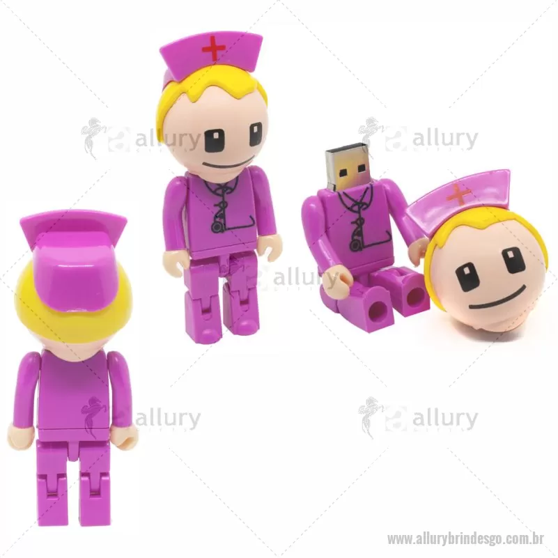 Pen drive com tampa no formato de boneco médico e enfermeiro(a). Interface USB. Articulações móveis. Confeccionado com plástico ABS resistente. - - ALLGOPEN046-4GB