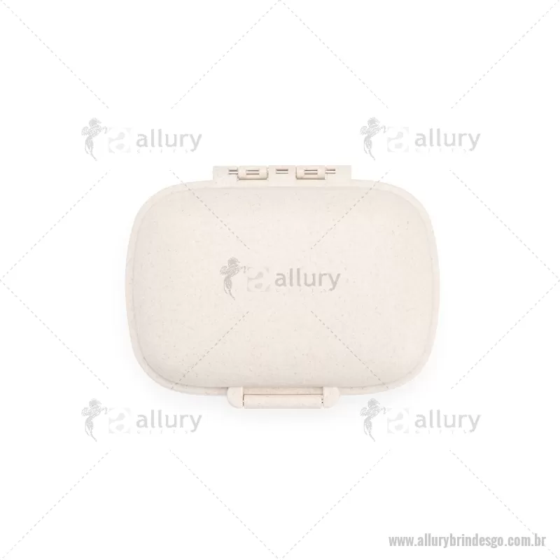 Porta-Comprimidos Plástico Porta-comprimidos compacto feito em plástico obtido da palha de trigo e anel de vedação para as bordas em silicone. Possui oito compartimentos com tampas removíveis, sendo dois maiores com capacidade de até 30ml e seis menores com até 10ml cada. Acompanha palheta multiuso. Largura : 8,6 cm x Espessura : 3,6 cm x Comprimento : 11 cm Peso aproximado (g): 72 - - ALLGOPCP016