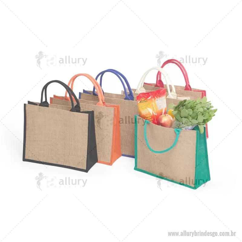 Sacola ecológica confeccionada em juta com alças costuradas na parte interna. - - ALLGOSAC076