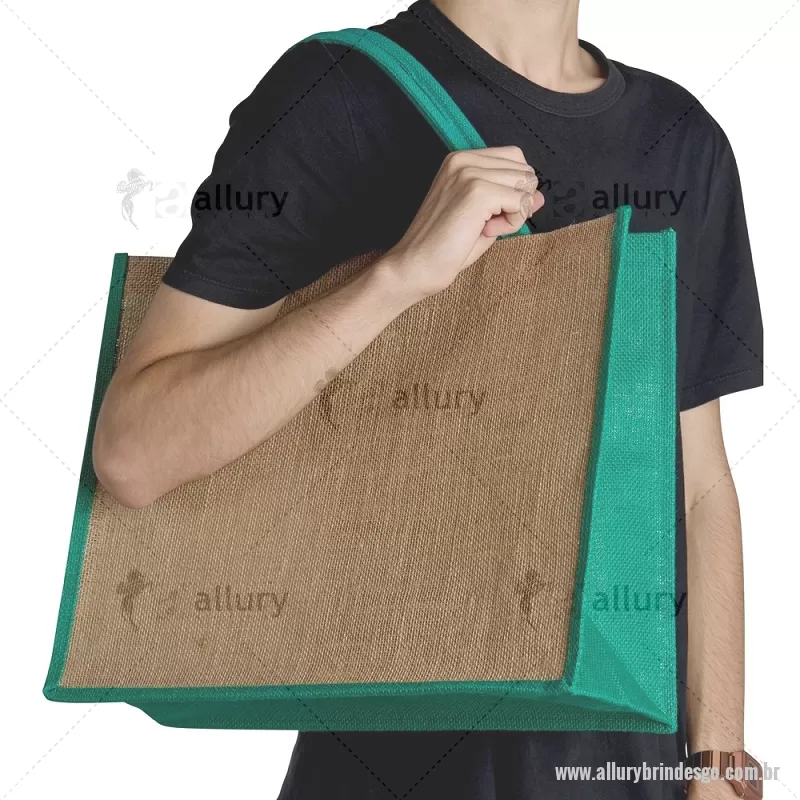 Sacola ecológica confeccionada em juta com alças costuradas na parte interna. - - ALLGOSAC077