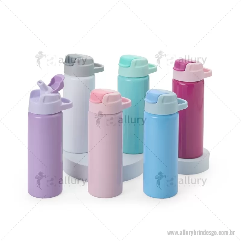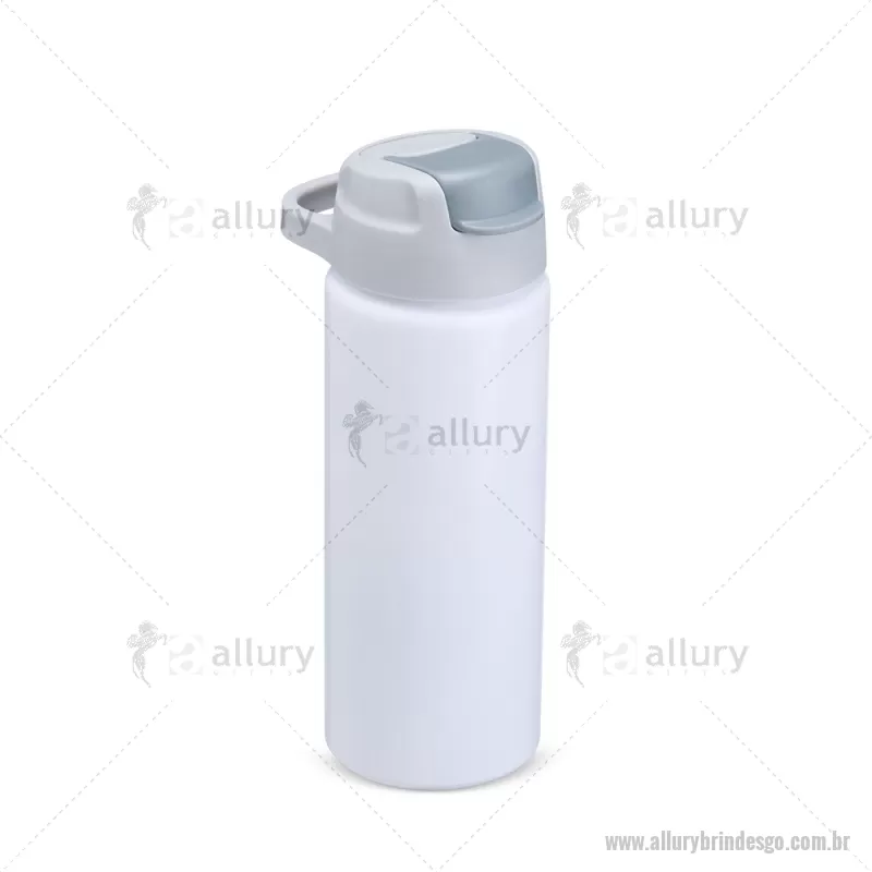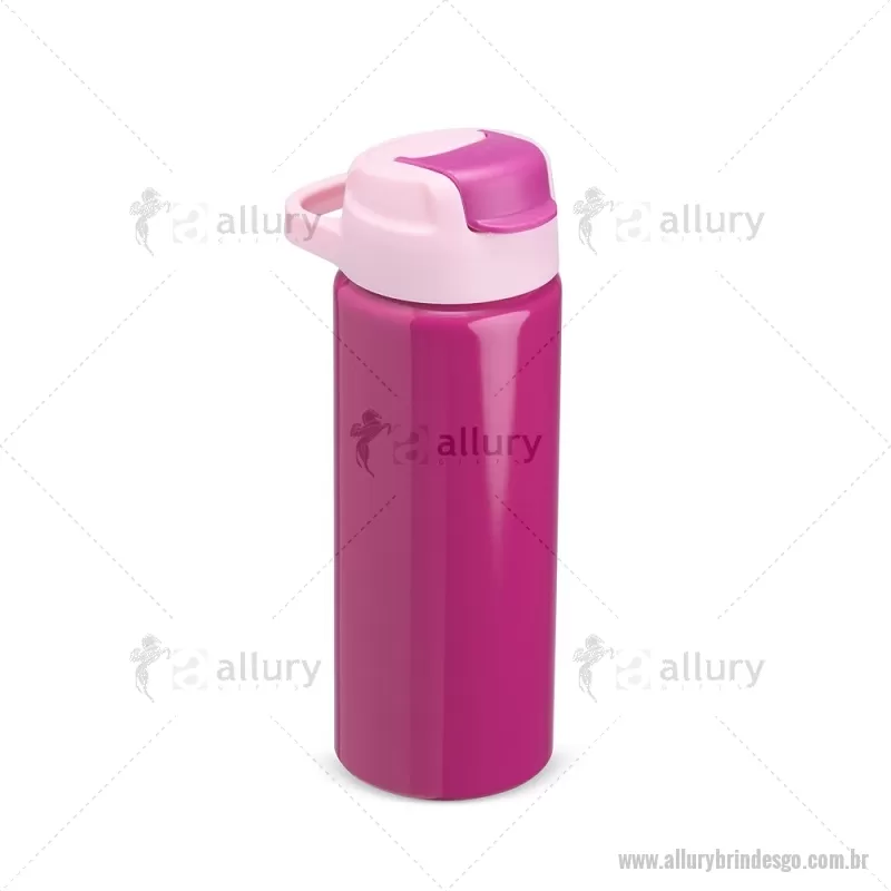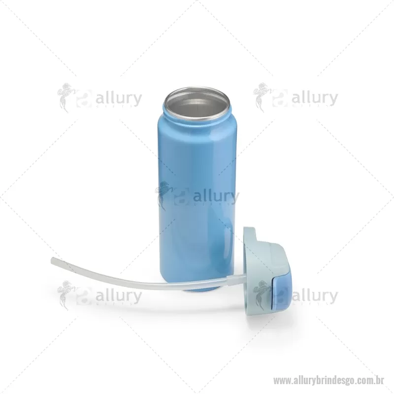 Squeeze de alumínio com capacidade máxima de 600ml. Possui tampa rosqueável em plástico com alça para transporte, protetor de bocal, bico flip top e canudo interno em plástico. Altura : 20,5 cm x Largura : 7 cm x Circunferência : 22 cm Peso aproximado (g): 117 - - ALLGOSQM087